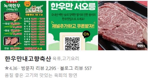 🔸 “진짜 한우맞나 싶을 정도로 가격이 말도 안돼요. 고기 질도 좋고 불맛도 살아 있어서 대만족!”