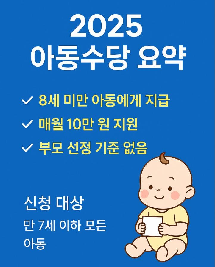 2025 아동수당 총정리|7세 미만 아동 월 10만 원 현금 지급! 신청 조건부터 수급 방법까지 안내