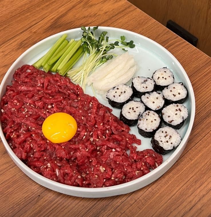 직접 썬 육회는 정말 쫄깃하고 고소했습니다. 잡내가 전혀 없고 식감이 탁월해서 감탄했어요.