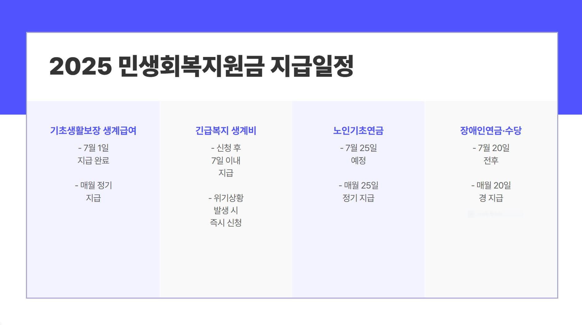 - 기초생활보장 생계급여: 7월 1일 (지급완료)