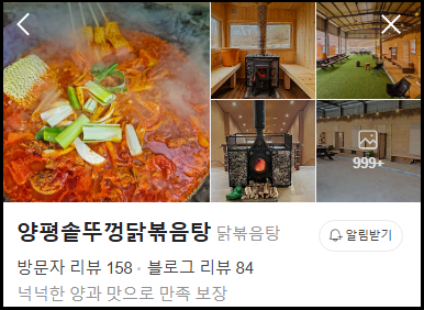 - 가게명: 양평 솥뚜껑 닭볶음탕