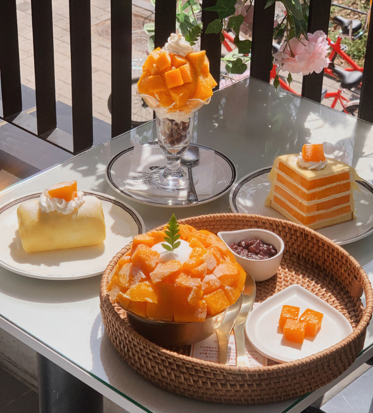 - 대표 메뉴: 망고·복숭아·샤인머스캣 과일빙수