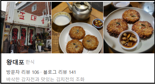 KBS2 생생정보 2332회에서 소개된 [할매~ 밥 됩니까?] 코너에는 진한 김치찌개와 정겨운 밥상 그리고 감자전, 김치전이 인상적인 왕대포가 등장했습니다.