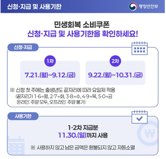 [2025년 7월 21일] 민생회복 지원금 소비쿠폰 신청 방법|요일제 신청일 총정리(서울 경기 인천 강