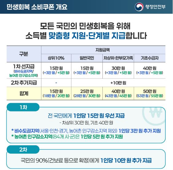 2025년 7월 21일부터 시작된 민생회복 소비쿠폰! 서울 경기 인천 강원도 충청도 전라도 경상도 제주도 전국민 대상 최대 55만원 지원금 신청 방법, 카드사·지역사랑상품권·주민센터 신청처, 요일