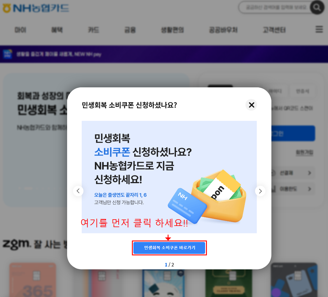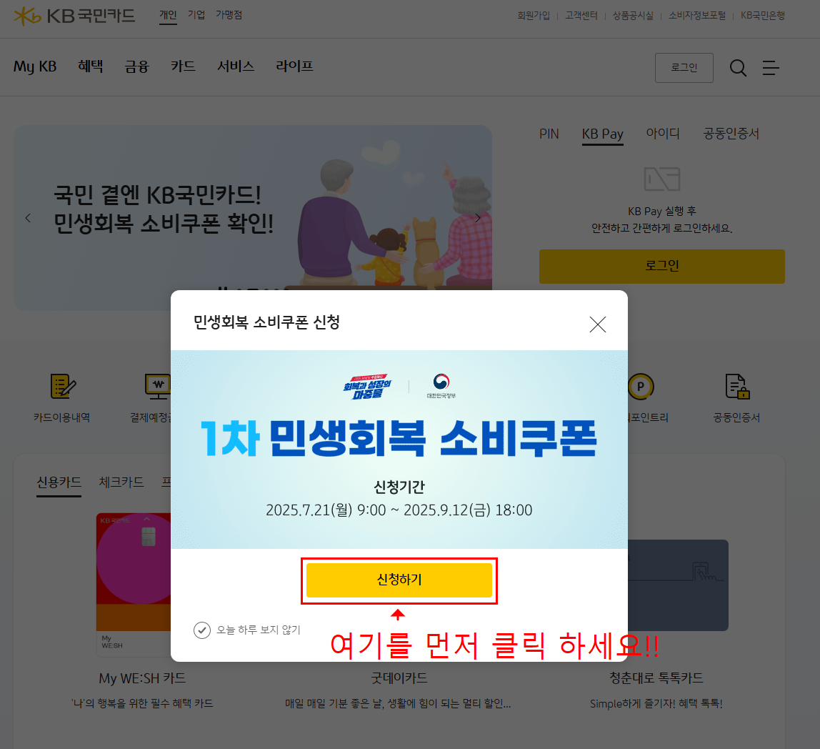 - ‘민생회복 소비쿠폰’ 신청 배너 클릭