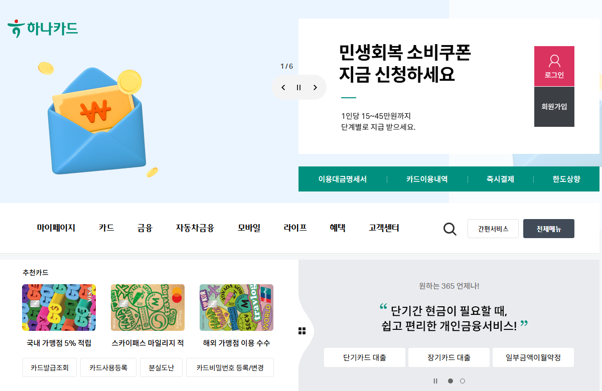 - 카드사 앱 또는 홈페이지 접속