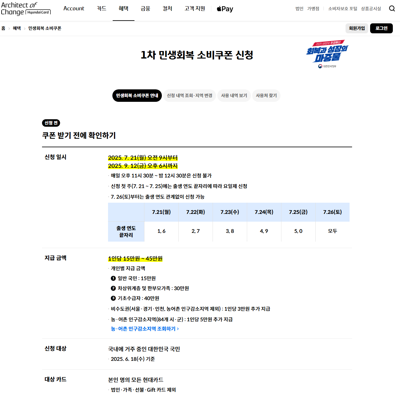 7월 21일, 드디어 2025 민생회복 소비쿠폰 신청이 시작됐습니다.