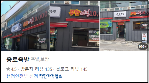 - 가게명: 종로족발