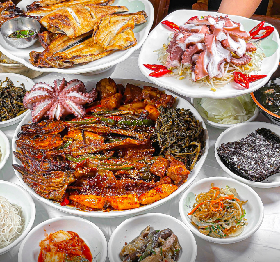 - 모듬 생선구이 : 고등어 임연수 가자미 열기, 4색 바다의 맛을 한 접시에 담은 베스트메뉴