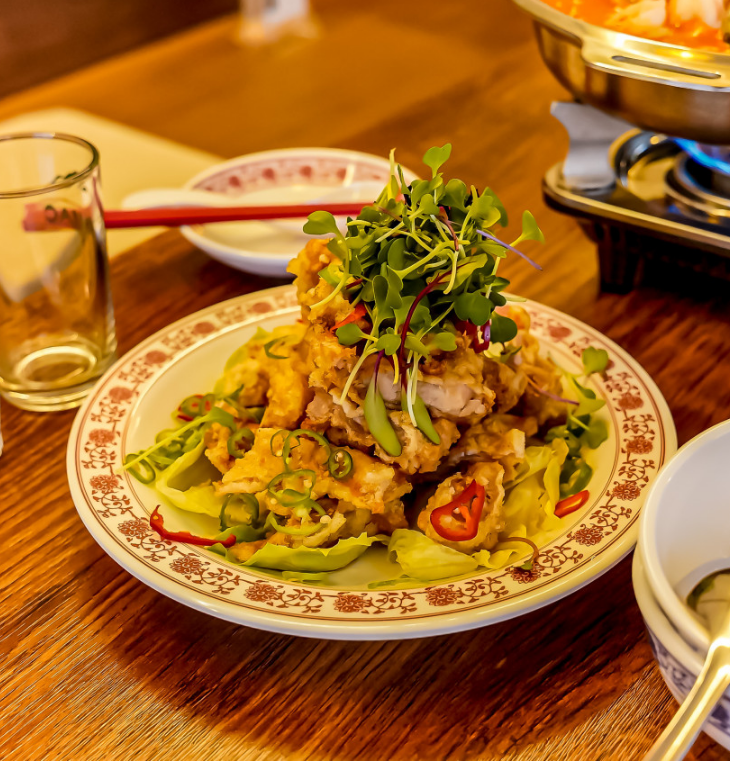[Signature] 타워 유린기 : 바삭바삭한 닭고기에 매콤한 소이 소스의 조화가 일품인 요리