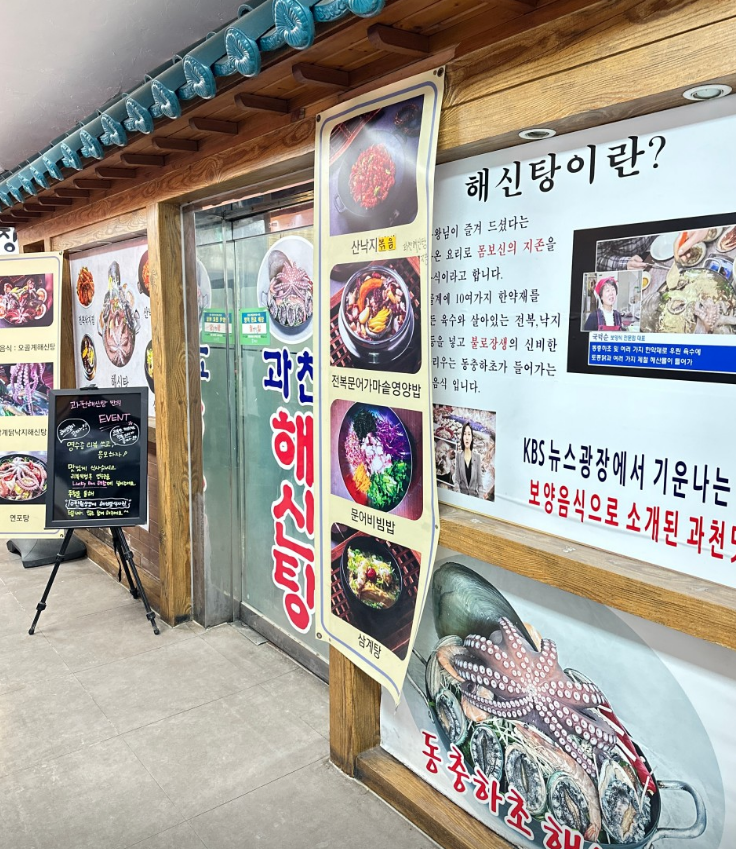 KBS2 생생정보 2352회에 소개된 이곳은 해산물 + 토종닭 + 보양 음식이 어우러진 해신탕이 대표 메뉴인 보양식 전문점입니다. 문어, 전복, 낙지, 토종닭, 새우 등 푸짐한 구성 및 묵은지 등갈비찜으로 입소문을 타며 과천의 인기 맛집으로 떠올랐습니다.