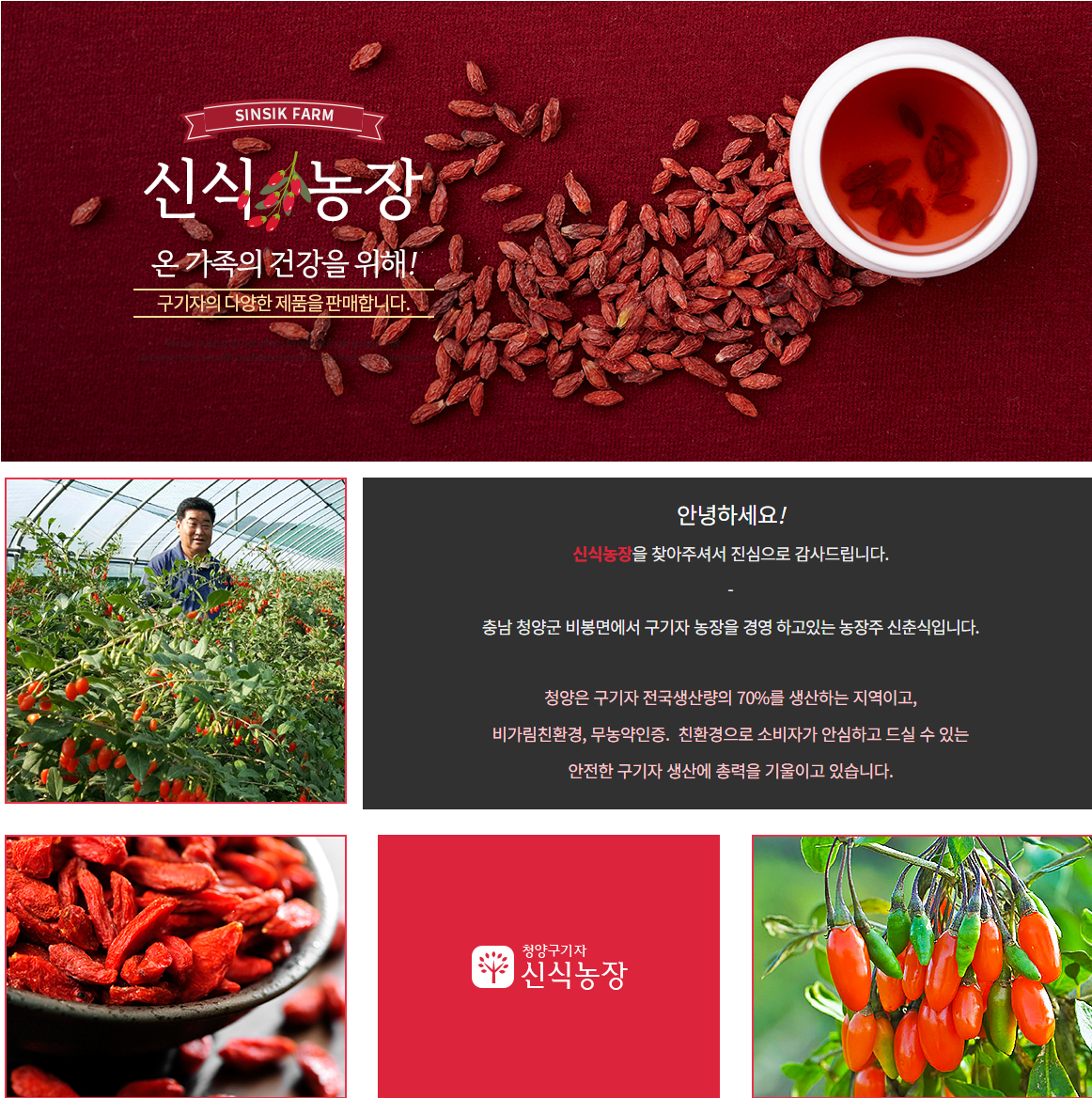 이번 방송에 소개된 신식농장은 청양에서 구기자를 직접 재배하고 가공하여 판매하는 곳입니다. 품질 좋은 구기자를 믿고 구입할 수 있습니다.