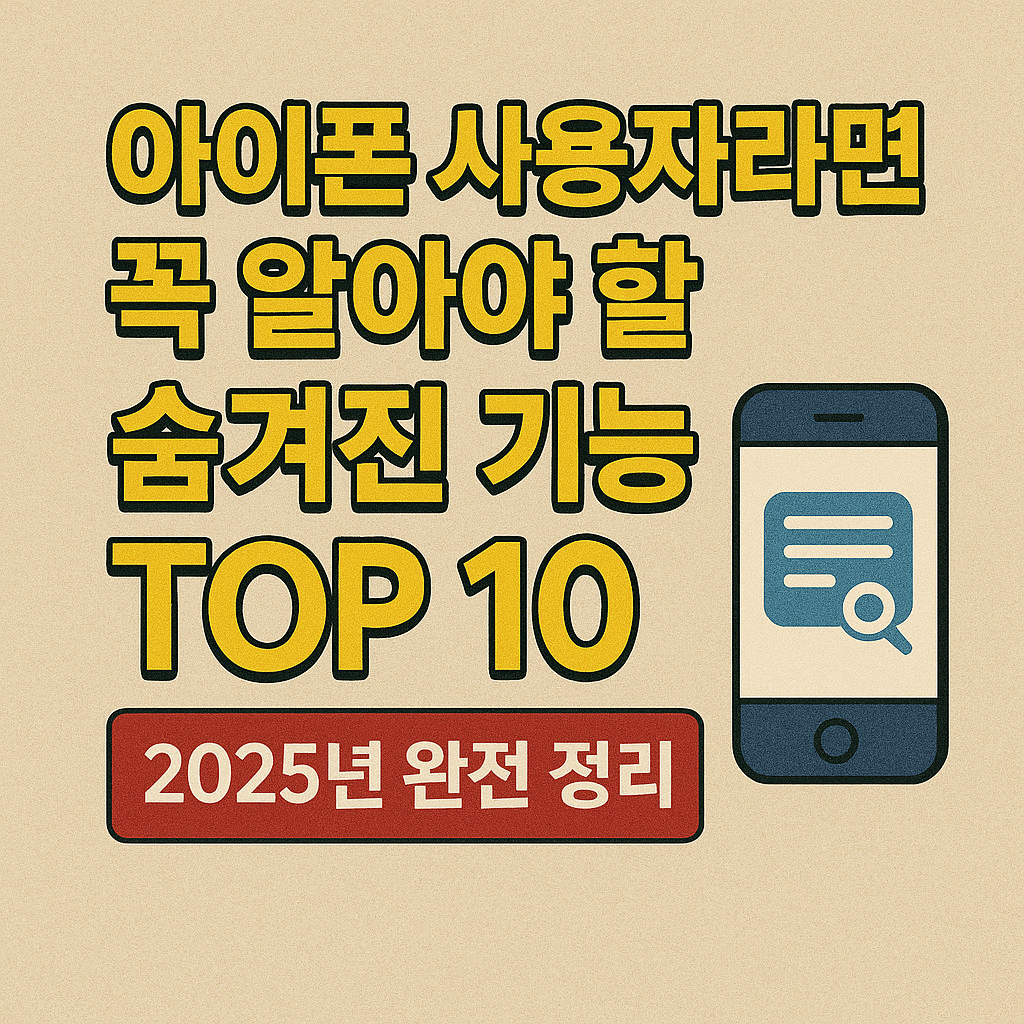 아이폰을 사용하면서도 잘 모르는 숨겨진 기능들이 많다는 사실, 알고 계셨나요? 오늘은 2025년 최신 iOS 기준으로 아이폰 숨겨진 기능 TOP 10을 소개합니다. 이 기능들을 알면 매일 쓰는 아이폰이 훨씬 더 편리하고 똑똑해집니다.