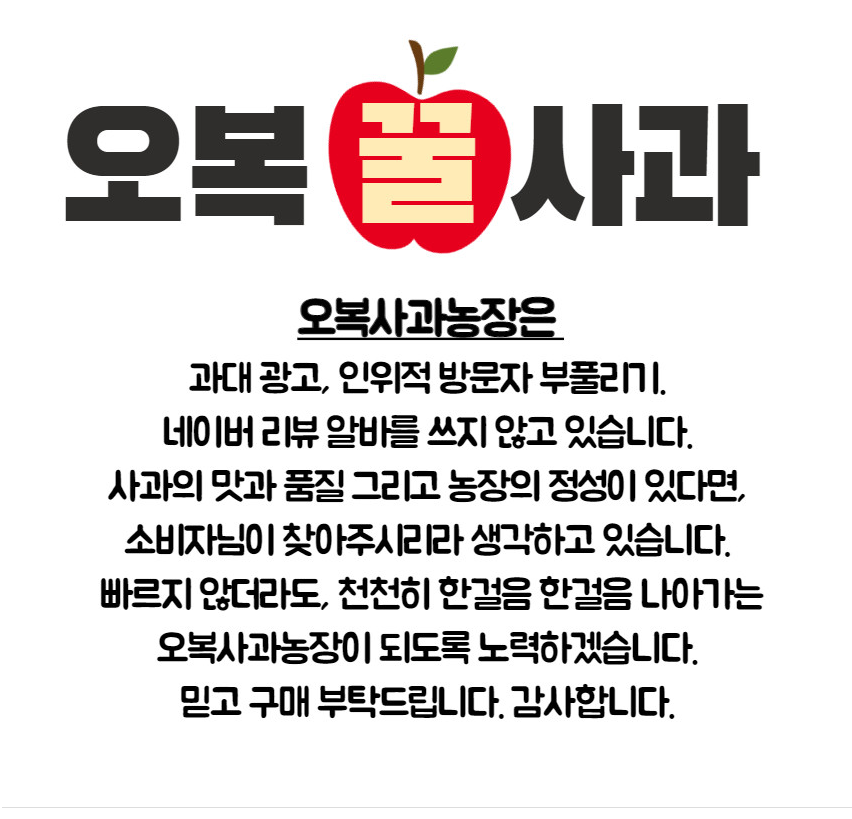 예산 사과를 믿을 수 있는 곳에서 직거래하고 싶다면, 오복사과농장이 최적의 선택입니다. 방송 후 주문이 몰릴 수 있으니 미리 예약하시는 걸 추천드립니다 😊