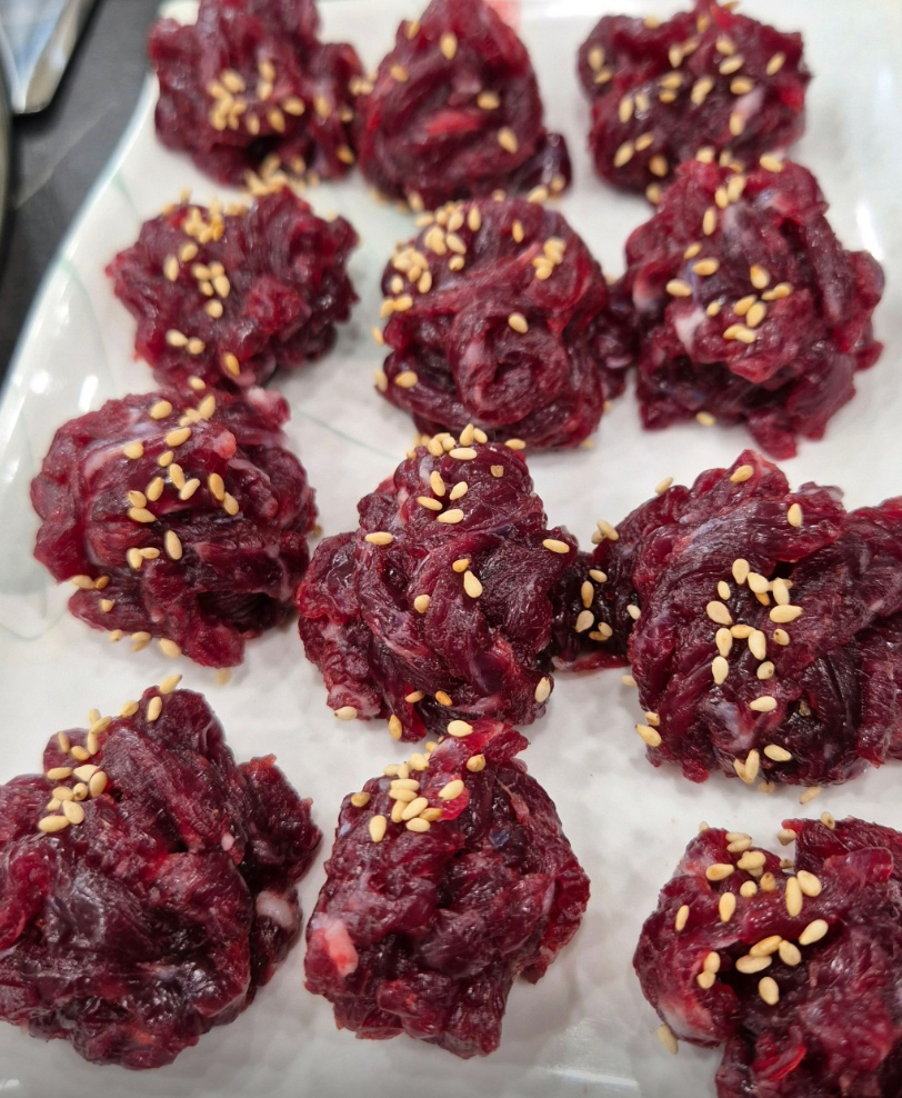 - 육회 / 육사시미 메뉴 보유 — 특히 육사시미는 도축 여부 등에 따라 주문 가능 여부가 제한됨