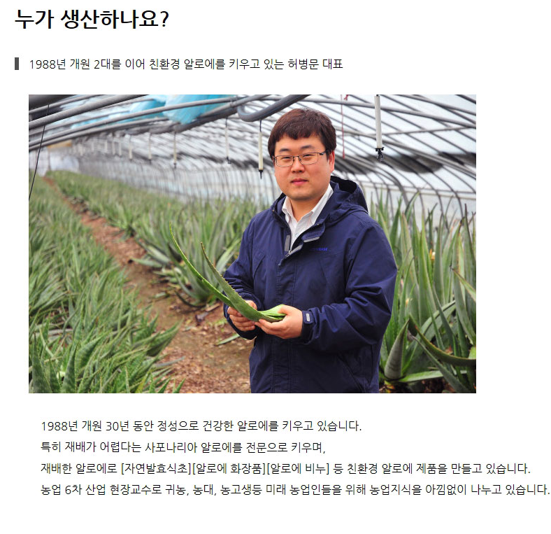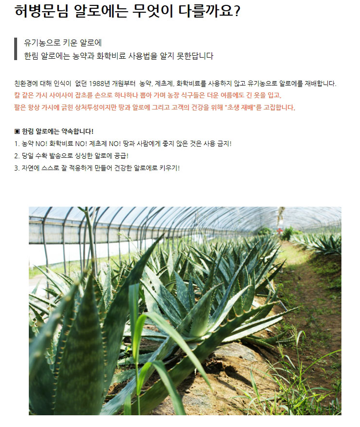 - 신선도 유지 – 수확 즉시 가공 및 출하, 고객에게 신선한 알로에 제공