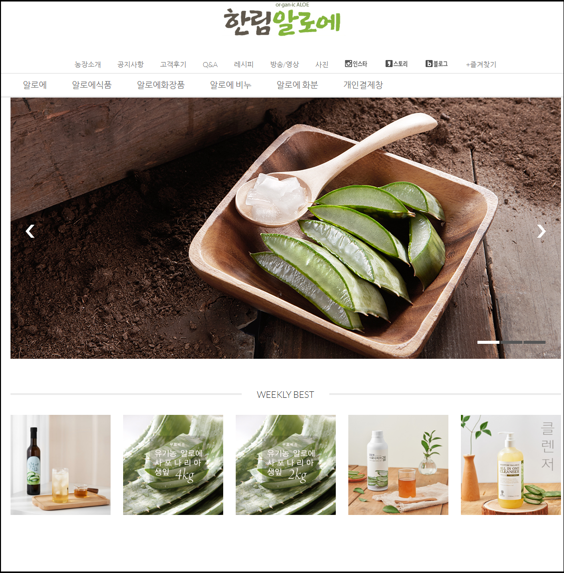 - 온라인 주문 : 공식몰을 통해 알로에 원물 및 가공 제품 구매 가능
