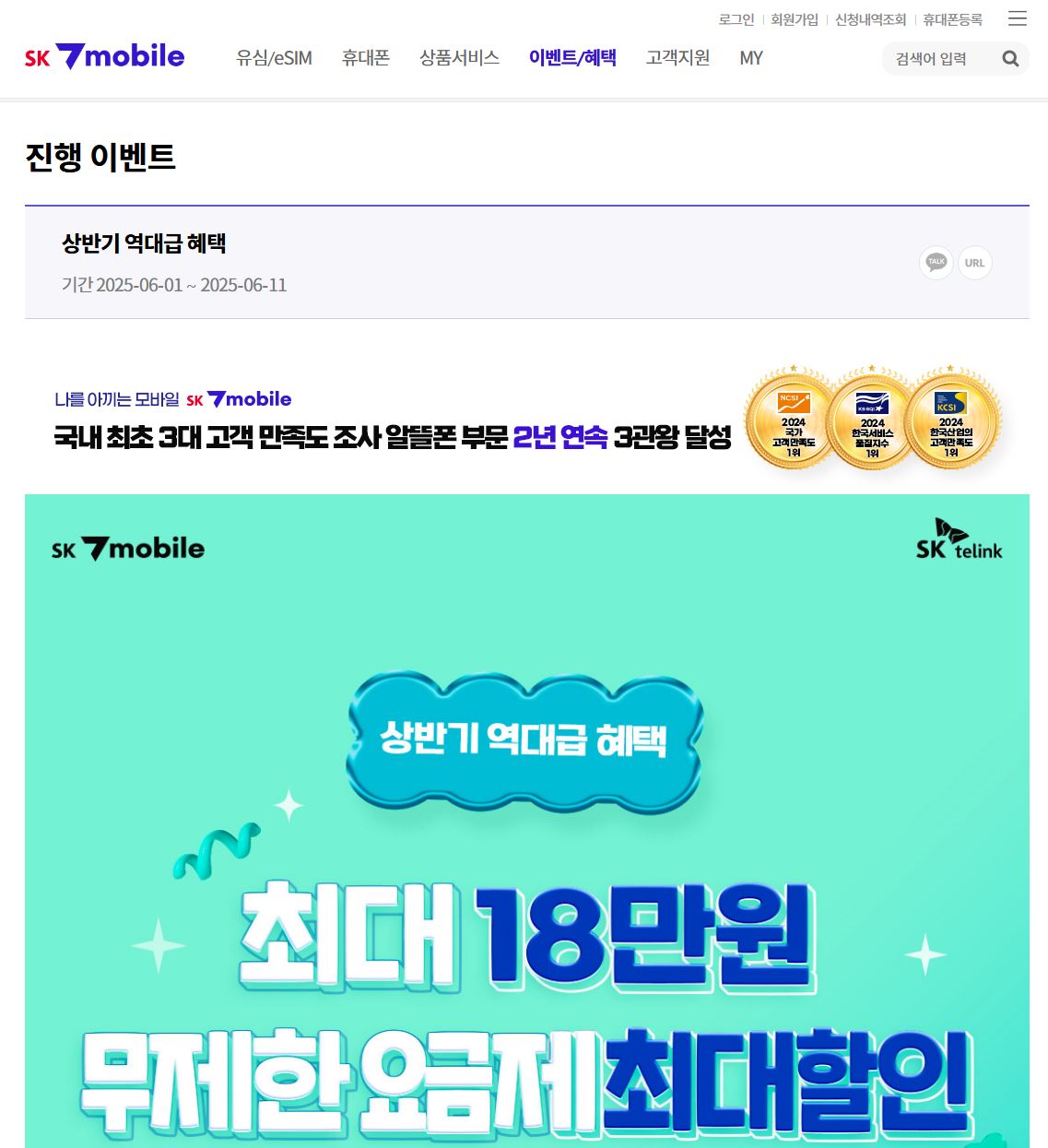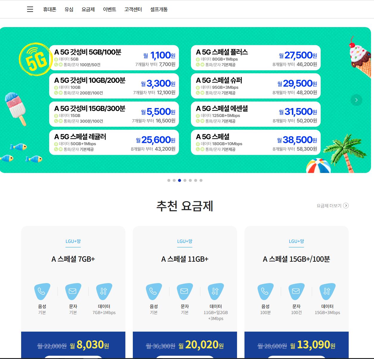 - 세븐모바일: 이벤트가 많고 가성비 요금제가 다양함.