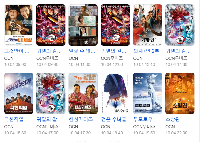 - OCN 오후 10:00 <검은 수녀들> 송혜교 주연의 미스터리 스릴러. 신비한 수녀원의 비밀을 파헤치는 오컬트 장르.