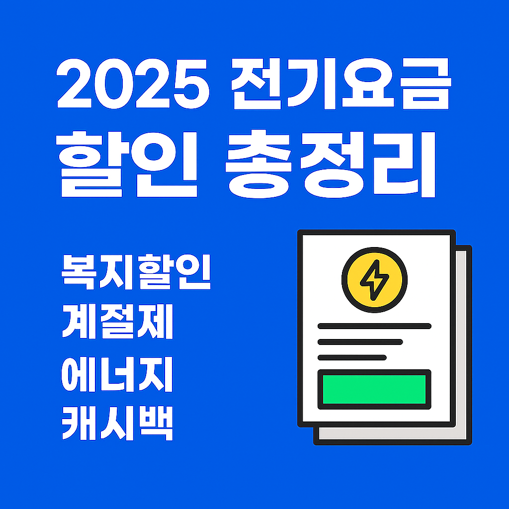 2025년 전기요금 할인 총정리! 복지할인·계절제·에너지 캐시백으로 최대 10만 원까지 절약하는 방법을 한눈에 확인하세요.