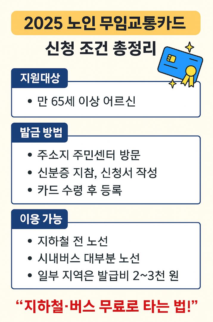 2025년 노인 무임교통카드 신청 조건과 발급 방법, 실제 사례까지 총정리! 지하철과 시내버스를 무료로 이용할 수 있는 방법을 지금 확인하세요.