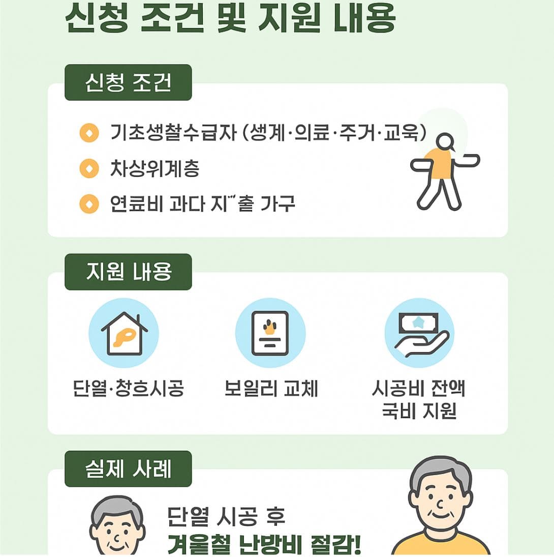2025년 저소득층 에너지 효율개선사업 신청 조건과 지원 내용 정리! 단열, 창호, 보일러 시공까지 전액 무료로 지원되는 정부 복지제도입니다.